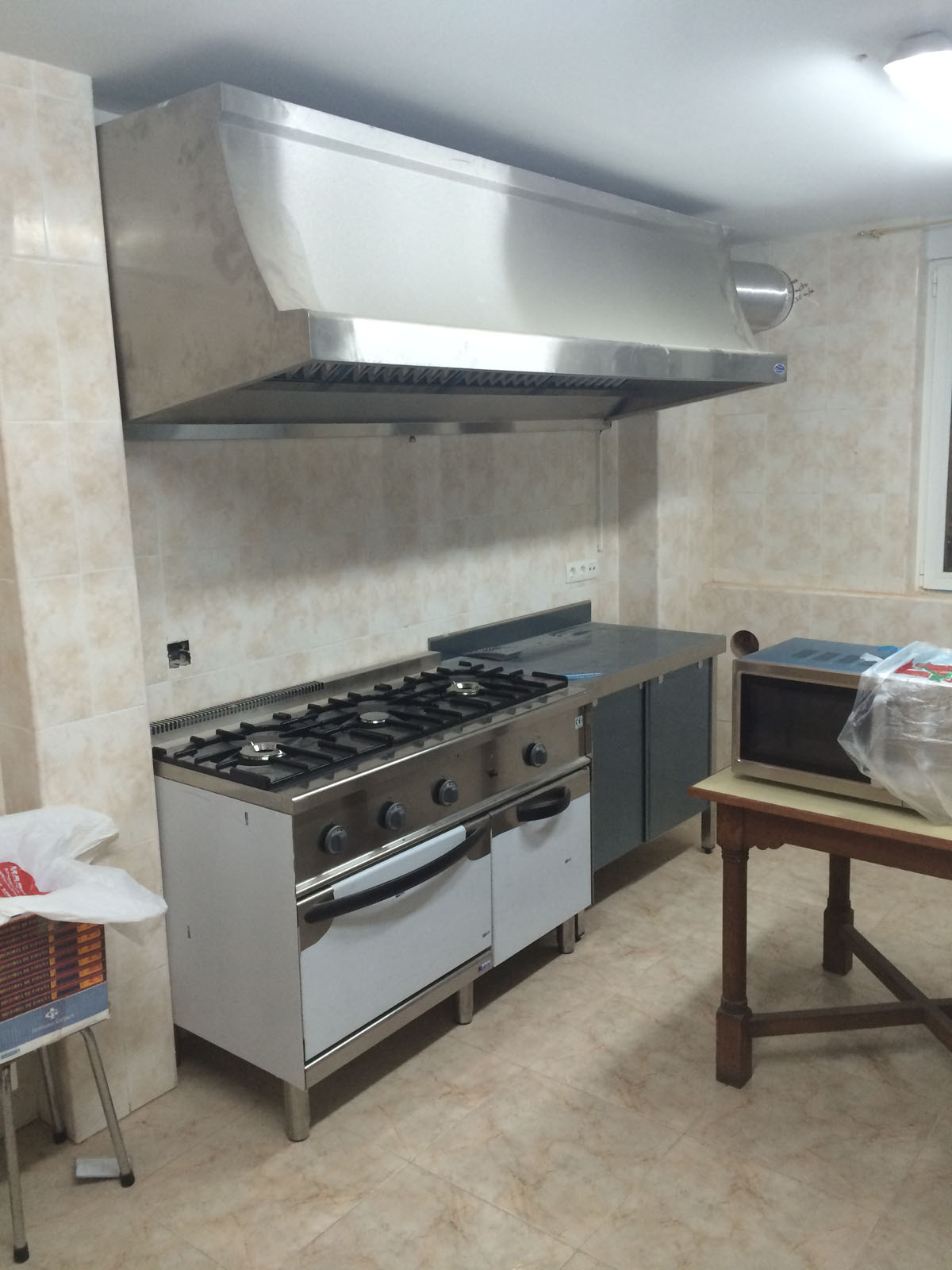 Con todo lo necesario para realizar comidas para un elevado número de personas, se encuentran ubicada en la planta baja de la casa las zonas destinadas a la elaboración y preparación de los alimentos, así como a la recepción de las materias primas y almacenaje de ellas.