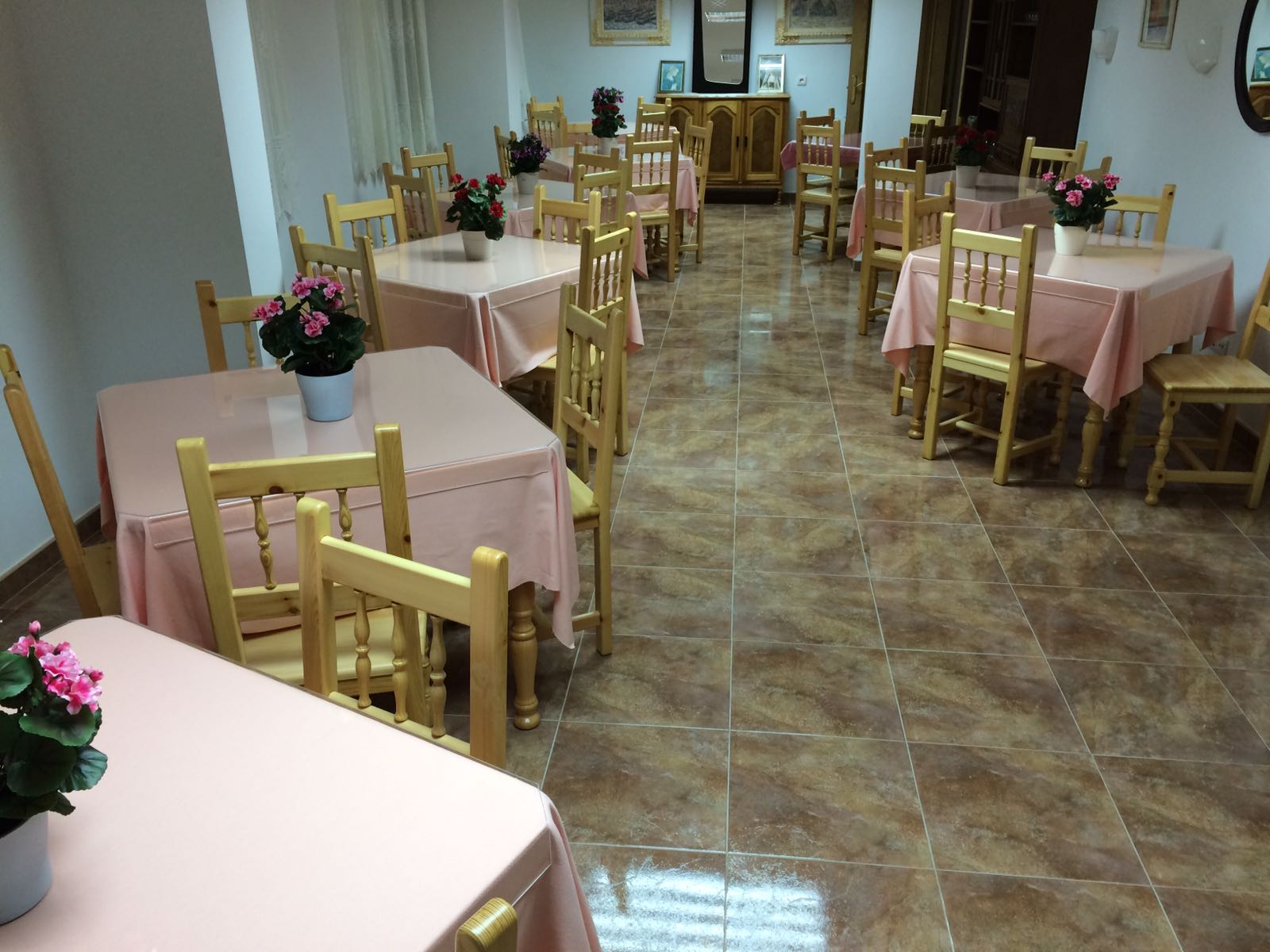 La casa de retiros y convivencias Quintanaloma dispone de un comedor grande donde pueden servirse comidas a unas 40 personas en mesas de cuatro comensales.